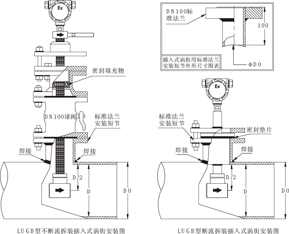 2.管道内径应与传感器通径等同,传感器两侧金属垫内径亦应保持与传感器通径相同。