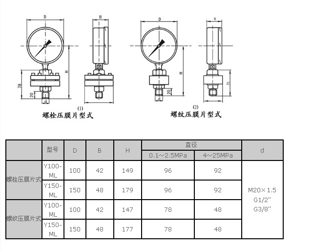 (1)螺纹连接:M20*1.5(G3/8″ G1/2″)