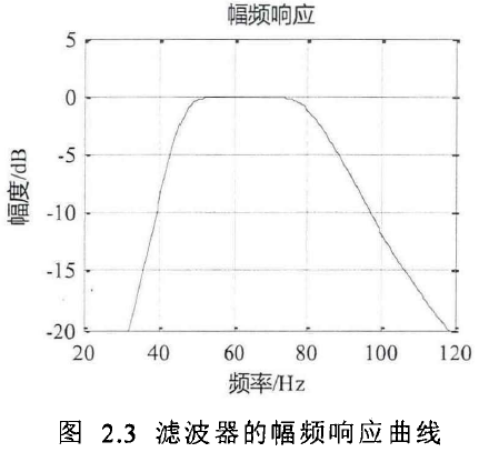 午夜成人小视频传感器原始输出信号的时域波形不够平滑,带有毛刺。为了更好地分析原始信号的时序特性,采用阻带较陡的6阶巴特沃斯滤波器对原始信号进行滤波。为了尽量保留时域波形中目标信号对应的信息,需要合理地设计滤波器的带宽。本文通过原始信号与滤波后信号的平均幅值谱的对比来考核滤波的效果。采用改进的周期图法,采样频率为250OHz, FFT计算点数为4096点,覆盖率为75%,计算20次FFT的平均值。时域的波动对应频域的带宽,因此,滤波后信号的平均幅值谱带宽应尽量与原始信号保持一致;滤波后的信号应尽量保留原始信号的幅值特性,所以,滤波前后平均幅值谱的峰值误差应小于士0.5%设计的滤波器的幅频特性如图2.3所示,以约为65Hz的涡街流量信号为例, 设计的滤波器的幅频特性如图2.3所示