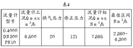 设计方案一:根据用户的需求,按用户总用量来规划设计选型,选用DN300PN10的涡轮流量计,供气能见表4。