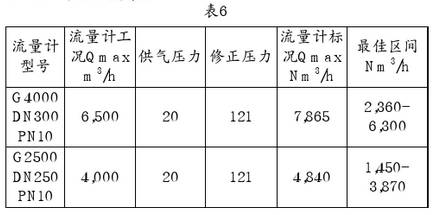 设计方案一:将现用的流量计调整为供应即将增加两台2,700Nm38/h的锅炉,增加一台DN250PN10的涡轮流量计供应原来的两台1500Nm3/h的锅炉。供气能力见表6。