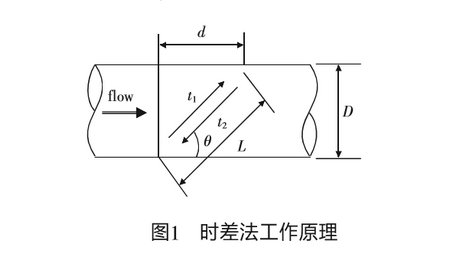 时差法午夜免费福利是以超声波在流体内顺逆两个传播方向,利用传播时间差与流体流速之间的关系求得流体流量的,工作原理如图1所示。
