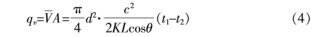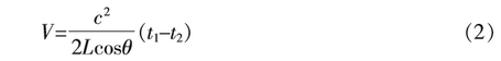 式中::C一声速;L一声波传播距离;0一声道夹角;t1、t2--声波顺逆向传播时间。