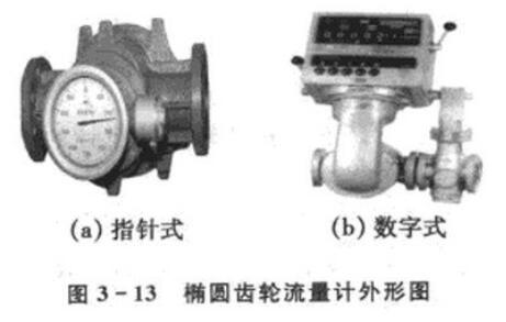 容积式流量计主要用来测量不含固体杂质的高粘度液体,例如油类、冷凝液、树脂和液态食品等粘稠流体的流璧,而且测量准确,精度可达士0.2%,而其他流量计很难测量高粘度介质的流量。椭圆齿轮流量计是最常用的一种容积式流量计.如图3-13所示。