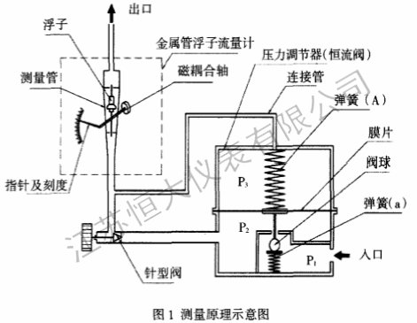 与恒流阀组成的吹扫设备原理,如图1所示,以恒定人口压力为例: