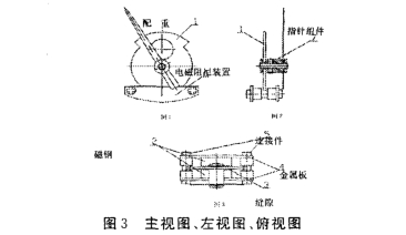 电磁阻尼器的工作原理。电磁阻尼器由磁钢、连接件、金属板等组装后为一体。指针的配重为导电金属铝合金,根据电磁感应定律,配重在磁场中运动,切割磁力线.必然产生感应电动势,从而在配重中产生涡电流;磁场对带电导体必然产生作用力,而此作用力恰好起到阻碍配重在磁场中运动的作用,配重运动的速度越大,产生的反作用也越大,其效果类似于阻尼器,从而使电磁阻尼器起到降低指针摆动频率、幅度的作用.达到稳定的效果。