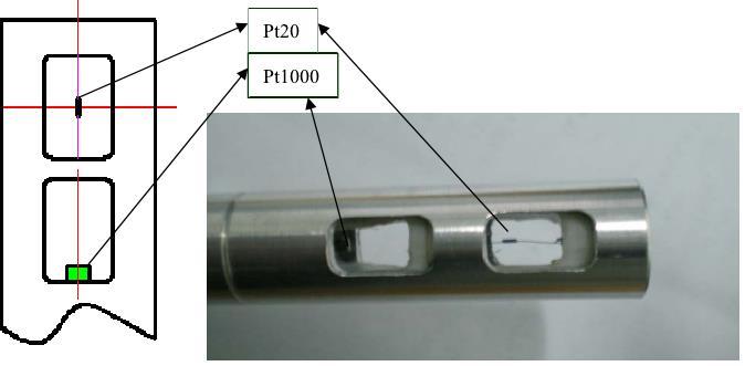 热式气体质量流量计传感器探头是流量计的测量单元,可以把需要采集的信息准确无误的转换成信号量传输给系统,是信号量采集的通道,是实现流量计实时计量的必要前提。如下图所示,这是午夜免费福利实验所使用的流量传感器探头。由于是插入式热式气体质量流量计,所以在使用时,必须要调节探头的长度,使流量探头(即 Pt20)处于管道的正中心位置,减小偏心安装产生的一切误差,以便获得精准的管道流量信号。同时,由于流量探头和气体直接接触,所以灵敏度得到很大的保证,灵敏度基本上处于最灵敏状态;但是从气体组分,气体粘度,粉尘颗粒,气压与结构强度等角度考虑,后期必须将流量探头进行封装,保证热式气体质量流量计传感器的受冲击能力,增加传感器探头的抗污染能力,延长传感器的使用周期。