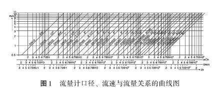 仪表口径是根据管道内平均流速而定的,通常选用与管道相同的口径或略小些。一般工业输水管道经济流速为1.5~3m/s,易粘附沉积结垢物质则提高到3~4m/'s或更高,矿浆等磨蚀性强的为2~3m/s。电磁流量计的液体流速范围可在1~10m/s之间选用。原理上,上限流速并没有限制,满度流量的流速下限一般为1m/s,有些产品为0.5m/s,低于此流速,从测量准确度出发应改用小管径,以异径管连接到管道。但加装异径管要注意压力损失的问题。图1为流量计口径、流速与流量关系的曲线图,计算仪表口径时可参照。