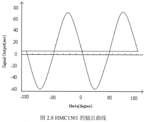 磁阻传感器的输出与方向角的传输曲线如图2.8所示_。由图可见,在-45°-+45°的范围内,输出电压AV与方向角θ近似为线性。