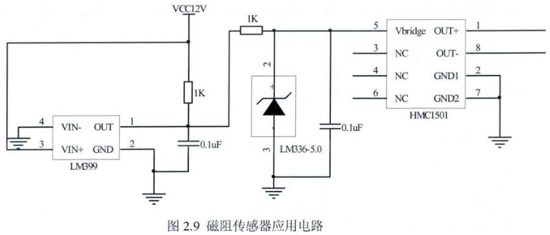 设计中磁阻传感器应用电路如下:
