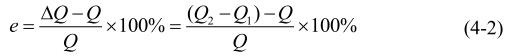根据午夜免费福利检定的相关标准,实验中对DN80大口径午夜免费福利5个常用的典型流量值 3.00m3/h、3.50m3/h、4.00m3/h、4.50m3/h和5.00m3/h进行流量测量。实验中在每个设定流量值附近重复5次测量,为保证称重装置的有效运行和测量数据的稳定性,每次测量保持管道内液体通过 90s,待管道内液体流动稳定后开启称重装置,并同时记录测量时间内待测午夜免费福利的累积体积Q1和Q2。以称重装置测量的液体体积Q作为流量测量标准值,以待测午夜免费福利累积体积的示值差△Q作为午夜免费福利的测量值。其中,午夜免费福利测量误差e为