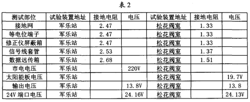 接地网的安装与连接:接地网是整个涡轮流量表防雷试验比较关键的-一个内容,能不能准确的论证试验的有效性,必须保证接地网达到标准的接地电阻,通过对实地地电阻率的测试,初步选择6个接地模块埋设并配用降阻剂使用,边安装边测试直到达到标准值后才引人等电位箱。在军乐站和松花阀室安装模块并测试数据见表1。