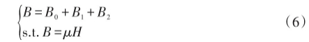 式中,B0为励磁线圈产生的磁感应强度。将B代入式(1),则流速可以进-步准确确定。在已有的电磁流量计磁场计算时,假设B1是不变的,但是这不符合疏浚管道的实际情况。
