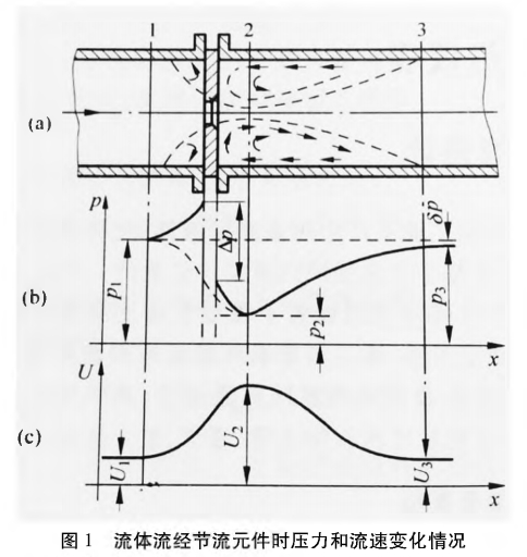 如图1所示流体流经成人午夜免费视频的节流元件时的压力、速度变化情况。从图中可见,沿水平管靠近流动到节流元件前的截面1处的流体,流束开始收缩,靠近管壁处的流体将向管道中心加速,而管道中心处流体的压力开始下降。由于惯性作用,流束的最小截面位置不在节流元件处由于流体流过节流元件后流束继续收缩的原因,而在节流元件后的截面2处(此位置随流量大小而变),此处流体平均流速U2最大,压力p2最低。截面2后,流束.逐渐扩大。在截面3处,流体速度Uz恢复到节流前的速度U1(U3=U1),流束又充满管道。压力P3不能恢复到原来的数值p1,由于流体流经节流元件时会产生漩涡以及盐城的摩擦阻力等会造成能量损失的原因,P1与p3的差值δp=p1-ps称为流体流经节流元件的压力损失。