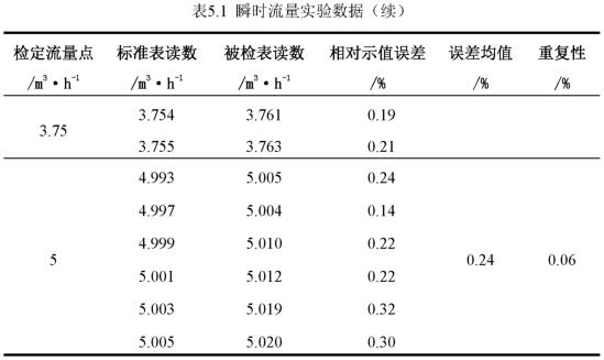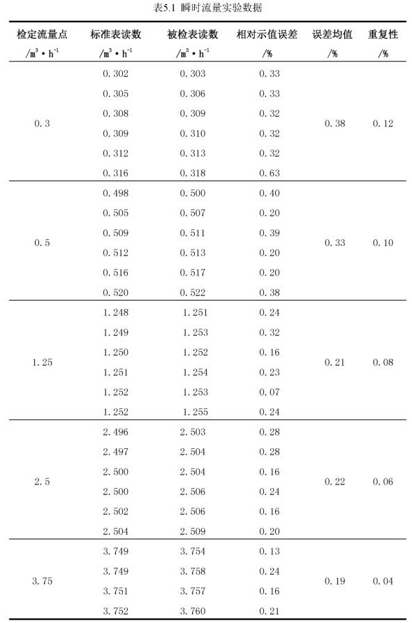 电磁流量计校准完成后,首先进行瞬时流量的实验,为了得到流量计的重复性误差,实验时,对每个流量点进行了6次重复实验,保证了数据的准确性。实验数据如表5.1所示。