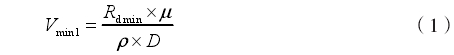 式中:Vminl一基于雷诺数限制的工况流速下限,m/s;Rdmin一为保证标称准确度,所需最小雷诺数;μ一流体在工况下的动力黏度,cP或mPa·s;ρ一流体工况密度,kg/m3D一管道内径,mm。