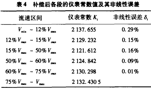 表4为补偿后的各段仪表常数以及非线性误差计算值。由此可见,补偿后精度得到了提高。