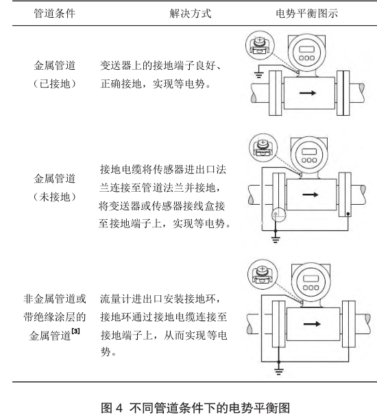 电磁流量计准确测量的前提是要保证被测流体介质和传感器之间等电势。传感器通常都自带标准参考电极,确保所需电势平衡,一般无需采取其他措施或使用接地环来确保电势平衡。