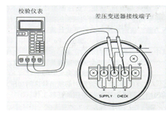 待差压变送器模盒腔内介质温度降至常温后(差压变送器的零点受温度影响),关毕三阀组的两侧阀,打开平衡阀,打开差压变送器的端子侧盖子,将万用表设在直流20mA档,调节差压变送器的调零螺钉到万用表的数值为4mA输出。