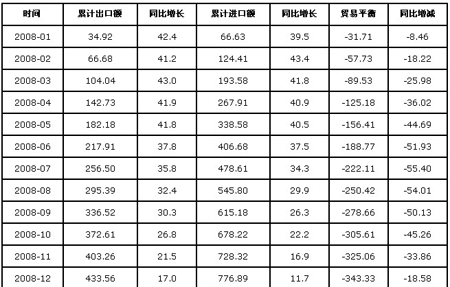 亿美元,同比增长-13.8%,增速比上年同期下降了25.5 个百分点;实现贸易逆差280.82 亿美元,比上年同期的贸易逆差343.33 亿美元,逆差